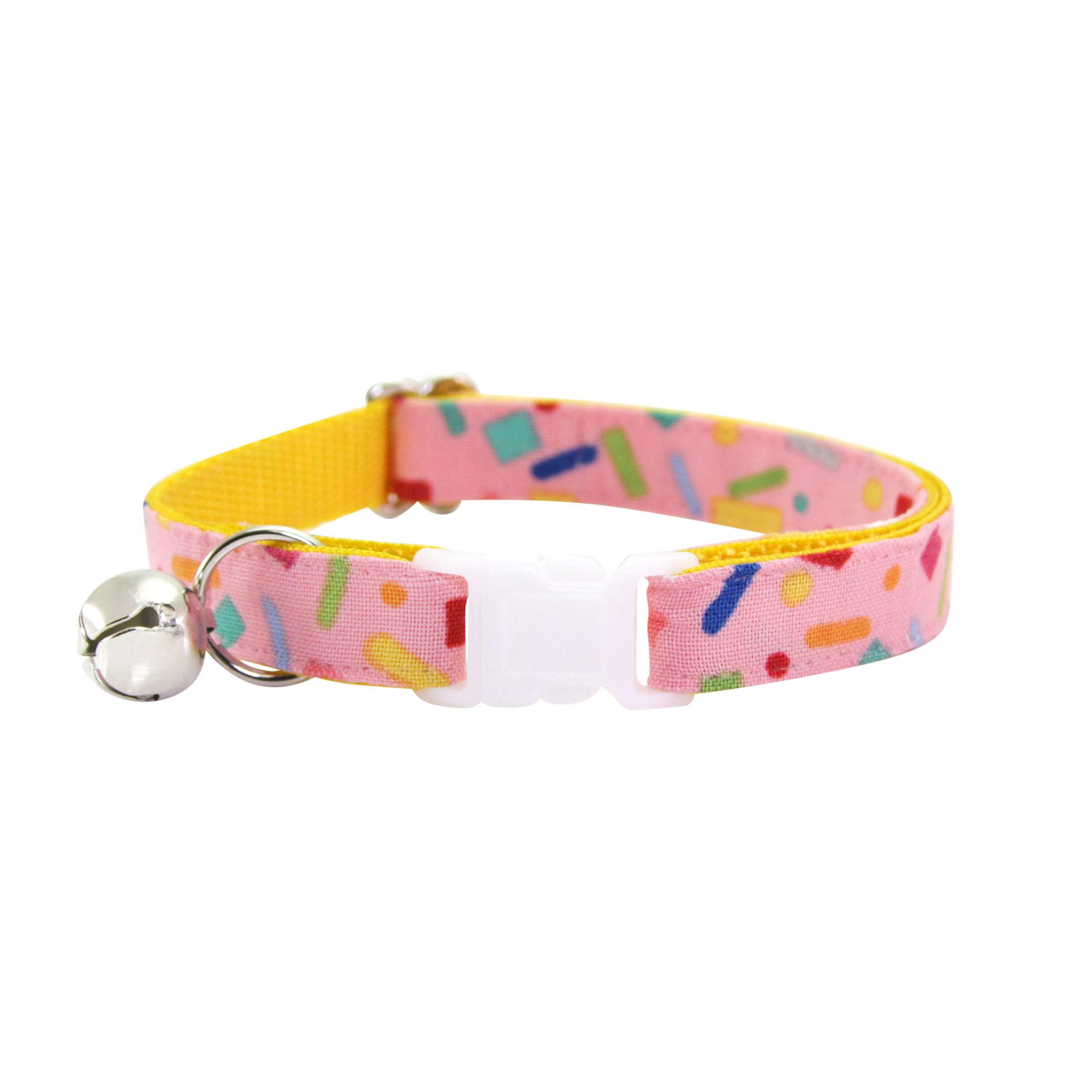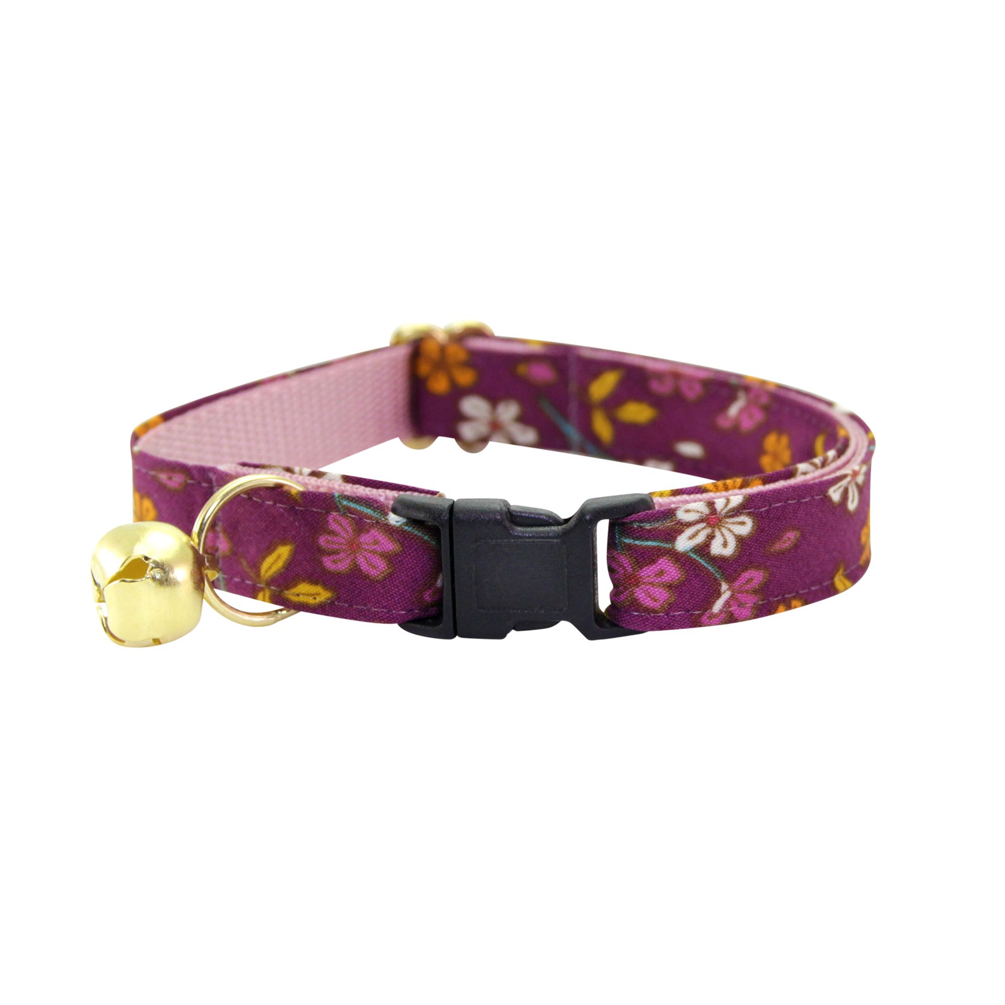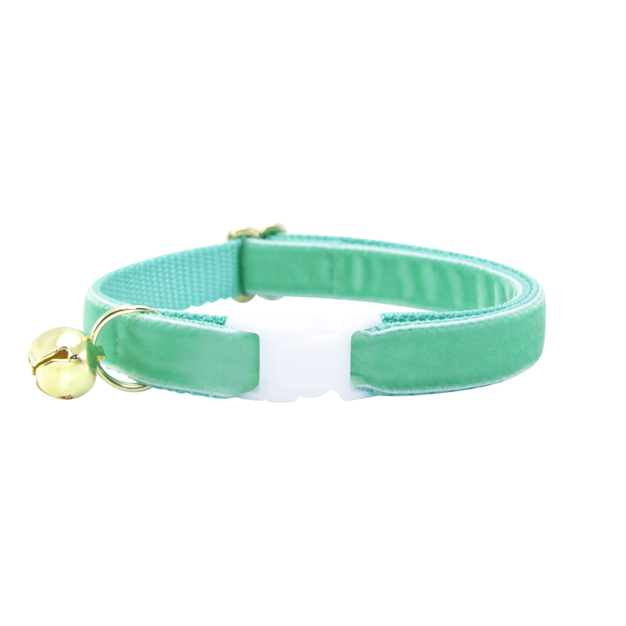 This stylish premium-quality cat collar from Made By Cleo feels as good as it looks. Your kitty will love wearing this comfortable, durable collar and will be basking in all the extra attention! This collar features a breakaway safety buckle clasp, which allows the collar to auto-release if it gets caught while adventuring or playing (not for use with leashes). A removable bell is included via the attached split ring. The adjustable length fits average adult cats and larger kittens with neck sizes 8-13 inches in diameter. Matching bow tie and slide-on bandana accessories are also available for purchase separately