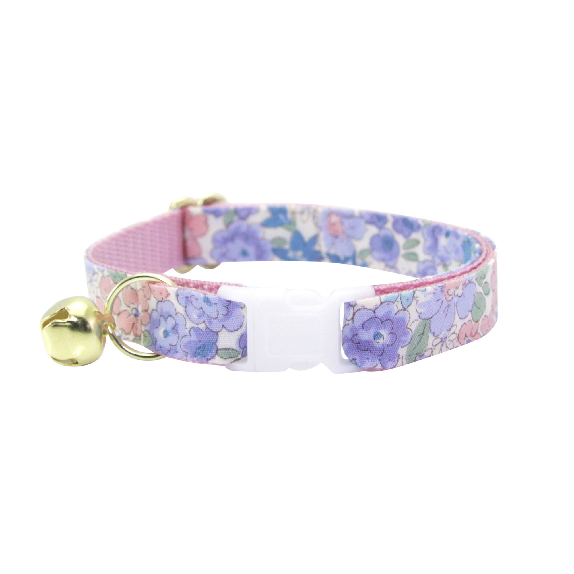 This stylish premium-quality cat collar from Made By Cleo feels as good as it looks. Your kitty will love wearing this comfortable, durable collar and will be basking in all the extra attention! This collar features a breakaway safety buckle clasp, which allows the collar to auto-release if it gets caught while adventuring or playing (not for use with leashes). A removable bell is included via the attached split ring. The adjustable length fits average adult cats and larger kittens with neck sizes 8-13 inches in diameter. Matching bow tie and slide-on bandana accessories are also available for purchase separately