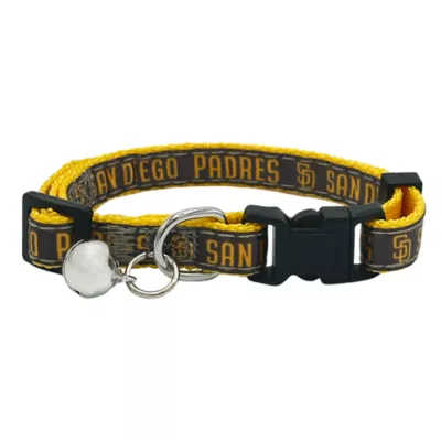 Show support for your favorite team with this Pets First San Diego Padres Satin Cat Collar. Be prepared to receive many compliments as the jingle cat bell makes rings. This MLB satin cat collar is made from heavy-duty materials that will last and ensure maximum durability and comfort. The design is detailed with bright colors that won't fade off! Created to be long-lasting and withstand indoor and outdoor use. This collar is pet friendly with an adjustable strap to fit any size cat with ease, and is equipped with a plastic clip-in buckle to gently put on and take off your cat. Simply clip it on and you're good to go. Measures: from 8 inches - 12 inches in length and 0.4-inch width. If this size is too small, you can use our Medium or Large Dog Collar instead.