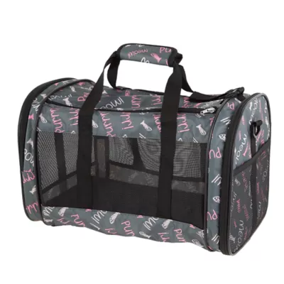 Pink Meow Pet Carrier. This carrier allows you to load your pet in from either the top or the side, and features mesh panels that not only provide great airflow but also allow your pet to see out. Only at PetSmart.