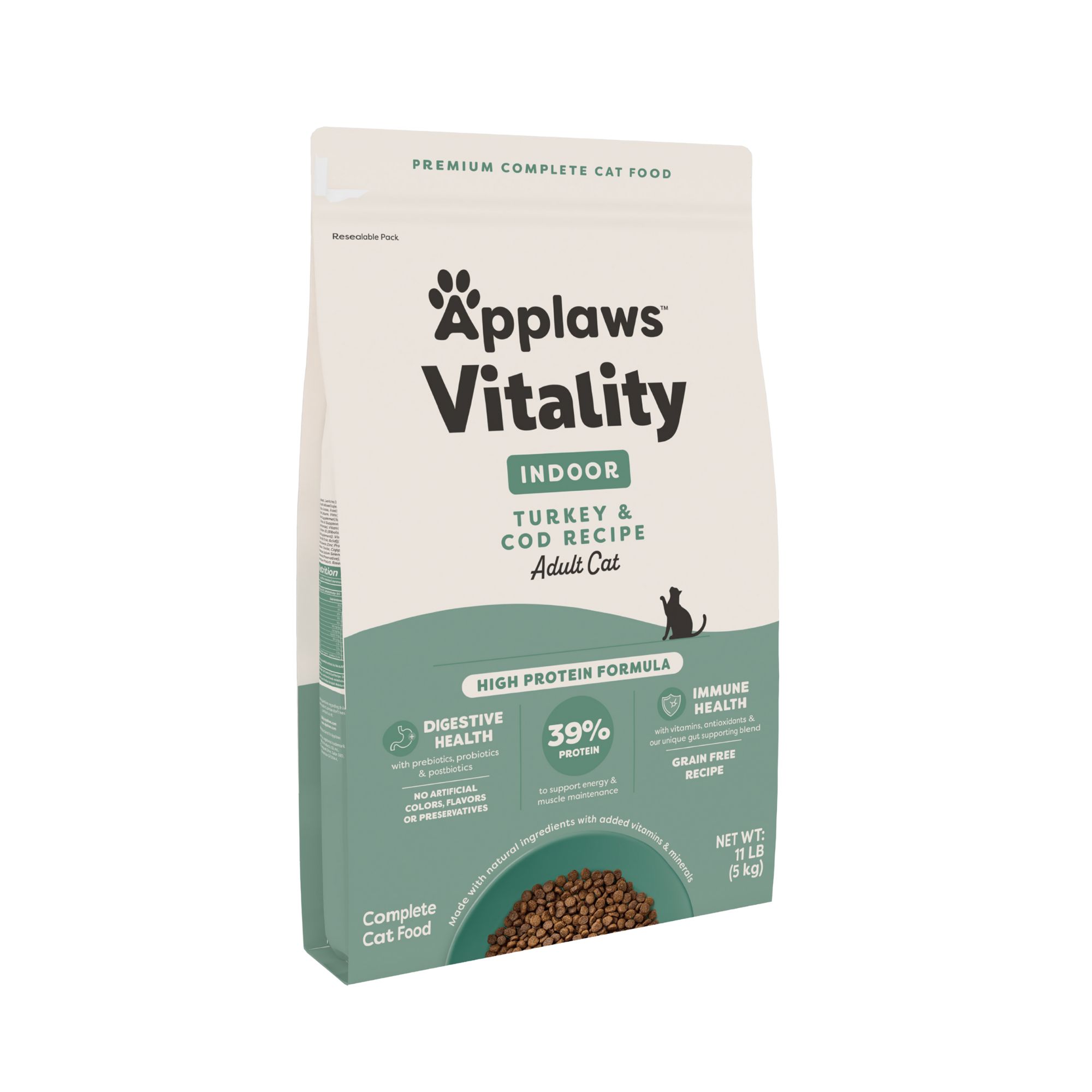NO ARTIFICIAL COLORS, FLAVORS, OR PRESERVATIVES: Applaws recipes are made with real, high–quality ingredients your feline friends will love. This natural cat food is free from artificial additives, providing a wholesome and tasty meal that supports your cat's health and well–being. ONLY THE GOOD STUFF: Applaws Vitality Dry Cat Food is grain–free, offering your cat a healthier, purrfectly balanced diet. This premium cat food provides all the essential nutrients your feline needs without any unwanted fillers. MADE FOR KITTENS (12WEEKS +) & ADULT CATS: to support your cat across multiple life–stages