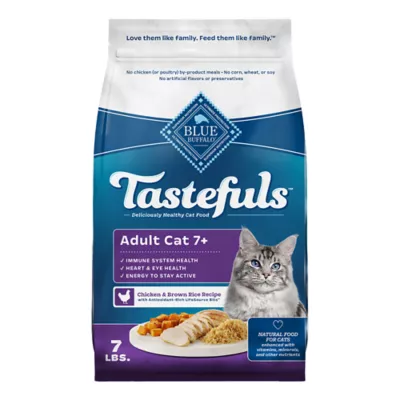 • Contains: One (1) 7-lb. Bag of BLUE Tastefuls Dry Cat Food for Adult Cats 7+, Chicken & Brown Rice Recipe