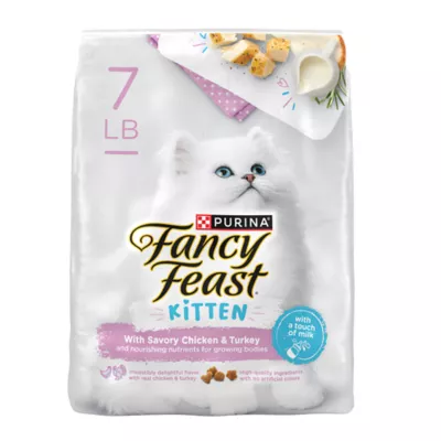 Transition Instructions: Changes in your kitten's diet should be made gradually to allow your kitten to become accustomed to a new food. Substitute small amounts of the new food for the old food, gradually increasing the amount of the new food while decreasing the old food, over a period of 7 – 10 days. This gradual transition will help avoid dietary upsets. After one year of age, transition to the Fancy Feast dry formula that's right for your cat.