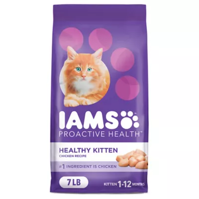 Help your kitten grow into a strong, healthy adult cat with IAMS PROACTIVE HEALTH Healthy Kitten Dry Cat Food with Chicken, designed for a cat's first year of playful, fluffy, furry, feline firsts. Chicken is the #1 ingredient in this high protein kitten kibble, designed in bite sized pieces perfect for little mouths. With nutrients like those in their mother's milk plus vitamin E, this dry kitten food helps build strong immune defenses in young cats. This recipe is also made with omega-3 DHA for brain development, as well as prebiotics and beet pulp to support your kitten's digestive health. If you're looking for kitten food to support healthy development for your kitten's first year, get your paws on this, and keep your kittens happy, healthy, and ready to pounce as they grow into adult cats with IAMS.