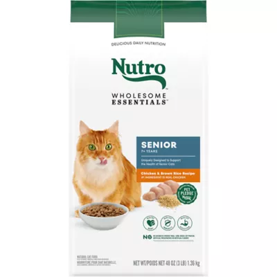 - Contains one (1) 3 lb. Bag of Nutro Wholesome Essentials Senior Dry Cat Food, Chicken & Brown Rice Recipe.