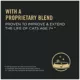 Serve your senior cat friend Purina Pro Plan Brand Cat Food SENIOR Adult 7+ Chicken and Rice Formula dry cat food. This dry cat food contains a unique blend that has been proven in a nine-year study to improve and extend the lives of cats age 7+. Findings are based on cats exclusively fed a complete diet with the proprietary blend vs. cats fed the complete and balanced diet alone. High protein promotes lean muscle mass and helps maintain a healthy weight. Real chicken as the first ingredient in the Chicken and Rice recipe provides the balanced nutrition she needs. Our formula includes the antioxidants beta carotene and vitamin E, omega-3 fatty acids from fish oil along with omega-6 fatty acids from soybean oil, and prebiotic fiber from chicory root. This formula also contains key nutrients to help support her immune system, improve the microflora in her stomach to help maintain a balanced digestive system and help to support your cat's healthy skin.