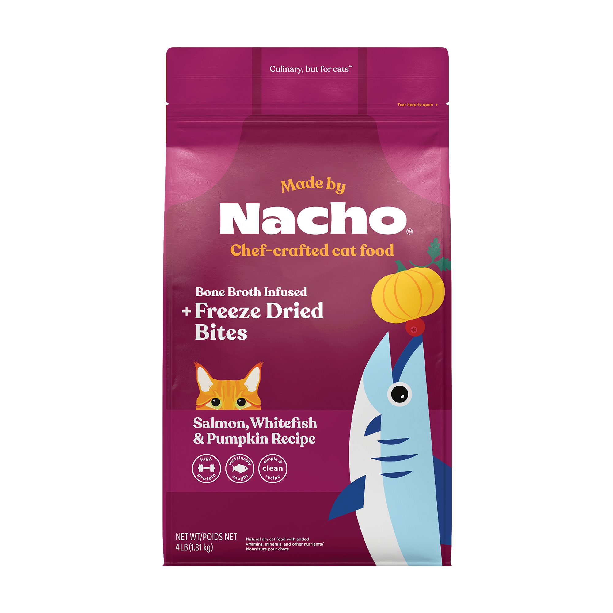 Ingredients: Salmon, herring meal, peas, dried egg product, chicken fat (preserved with mixed tocopherols and citric acid), natural chicken flavor, ground whole flaxseed, salmon meal, brewers dried yeast, salmon oil, calcium sulfate, choline chloride, taurine, dl–methionine, vitamin E supplement, biotin, iron sulfate, zinc sulfate, niacin supplement (vitamin B3), copper sulfate, vitamin A supplement, manganese sulfate, thiamine mononitrate (vitamin B1), d–calcium pantothenate, pyridoxine hydrochloride (vitamin B6), riboflavin supplement (vitamin B2), vitamin B12 supplement, vitamin D3 supplement, sodium selenite, calcium iodate, folic acid, rosemary extract.