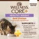 DESCRIPTION Wellness CORE+ Healthy Weight dry cat food recipe provides proven high-protein, natural nutrition and uses high-quality ingredients to support whole-body health. Each recipe is thoughtfully crafted to support the five signs of wellbeing plus the unique nutritional needs of your cat. This Healthy Weight recipe supports weight control & management and has L-Carnitine to support the healthy metabolism of fat. Each grain free, nutrient-rich formula provides high quality protein for your cat with no meat by-products, wheat, corn, or artificial preservatives, colors.