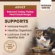 DESCRIPTION Wellness CORE Natural Grain Free Dry Cat Food Turkey & Duck Recipe is healthy, 100% natural grain free cat food for adult cats made with turkey, turkey meal, duck, pork and cranberries to help support your cat's optimal health and fortified with antioxidants, probiotics, vitamins and minerals, including fish and flax omega blend for healthy skin and coat. Wellness CORE grain free cat food formulas are based on the nutritional philosophy that cats thrive on a diet mainly comprised of meat. Each grain free, nutrient-rich formula provides high quality protein for your cat with no meat by-products or fillers, grain, corn, soy, wheat-gluten or artificial preservatives, colors or flavors.