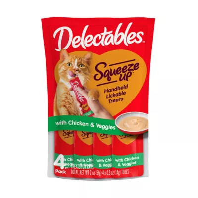 Hartz Lickable Squeeze Ups with Chicken & Veggies for cats are a new line of thick, tasty treats. They consist of rich, thick purees in lickable tubes that you can hand feed to your cat for a fun and delicious treat. Each pouch comes with 4 easy-to-feed tubes so you can interact and bond with your cat while feeding them these tasty treats throughout the day.