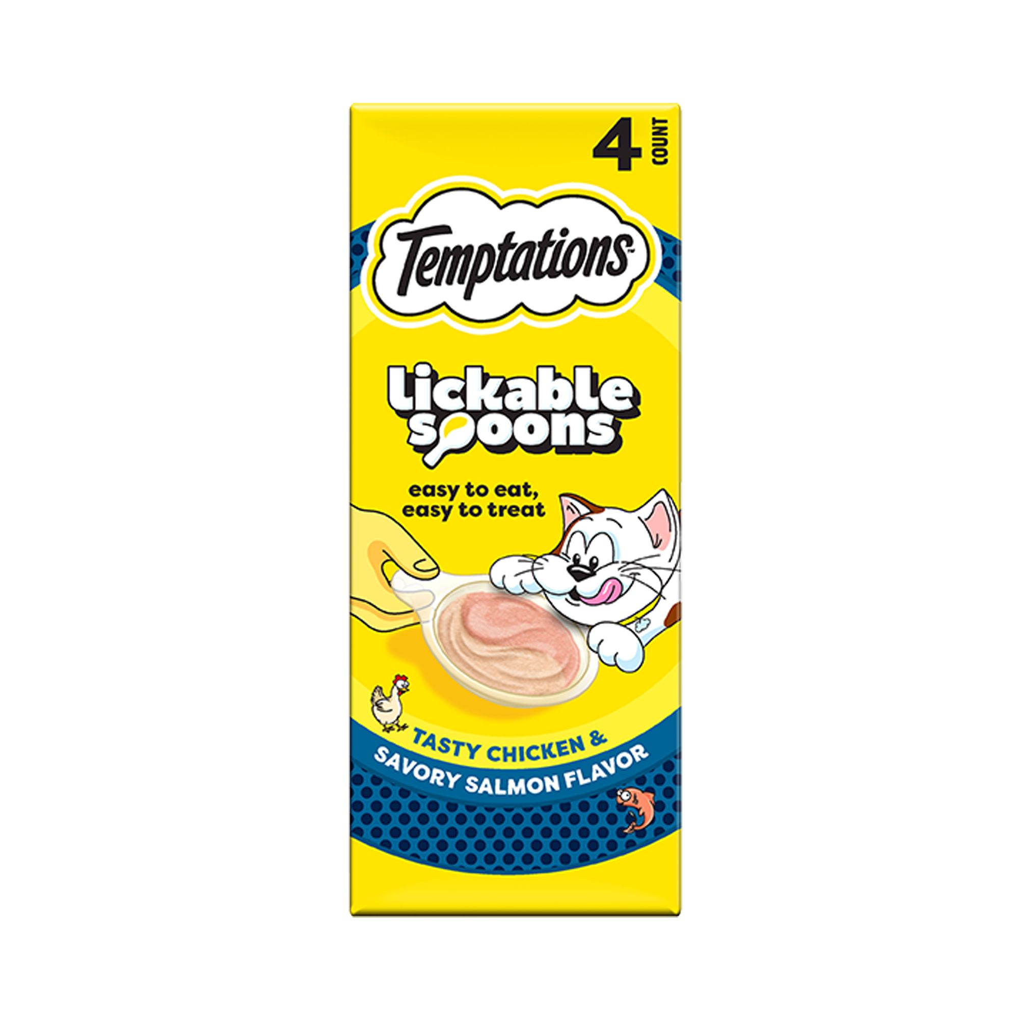 MEOWEE! cat treats let you bond with your favorite feline through playful, interactive treats. Our Savory Spoonables feature a built-in spoon, so your cat can enjoy a lickable treat and you can enjoy more closeness with less mess. Tempt your cat with these triple flavor purees packed with a savory combination of chicken, salmon and duck - all the flavors your cat loves in a smooth blend that they will come running for! The convenient, easy-to-use packaging allows you to squeeze the wet treat right onto the built-in spoon for your cat to enjoy without wasting a drop. These tasty wet treats are veterinarian-formulated and contain vitamins and minerals, plus taurine — an essential nutrient for cats. You'll also love that they are made with no colors or flavors from artificial sources, no artificial preservatives, no chicken by-product, and no carrageenan added. Feed up to 3 tubes per day for an average size adult cat. Intended for intermittent or supplemental feeding only.
