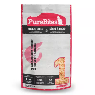 Go ahead, turn the bag around and look at our ingredients. PureBites are made with only 1 ingredient; 100% Pure Wild-Caught Raw Human Grade Shrimp. Cats love the taste of PureBites because our treats are freeze dried RAW to lock in the aroma, texture and freshness they crave. Cat parents love PureBites because our treats are 100% pure and rich in nutrients for a happy and healthy life. PureBites Shrimp is sourced from the Ocean and packaged in the USA with Human Grade Shrimp and is high in protein with on average 1 calorie per treat. PureBites are made using a delicate freeze drying process that preserves the nutritional integrity of RAW fresh whole food. Only water is removed, preserving all the characteristics and natural nutrition of fresh human grade shrimp. Our products are ideal for cats with health issues or pets that are overweight, diabetic, have allergies, gastrointestinal disorders, or are on a restricted diet. PureBites Shrimp 0.38oz | 11g has 3ozof RAW Shrimp per bag and on average 60 treats per bag.