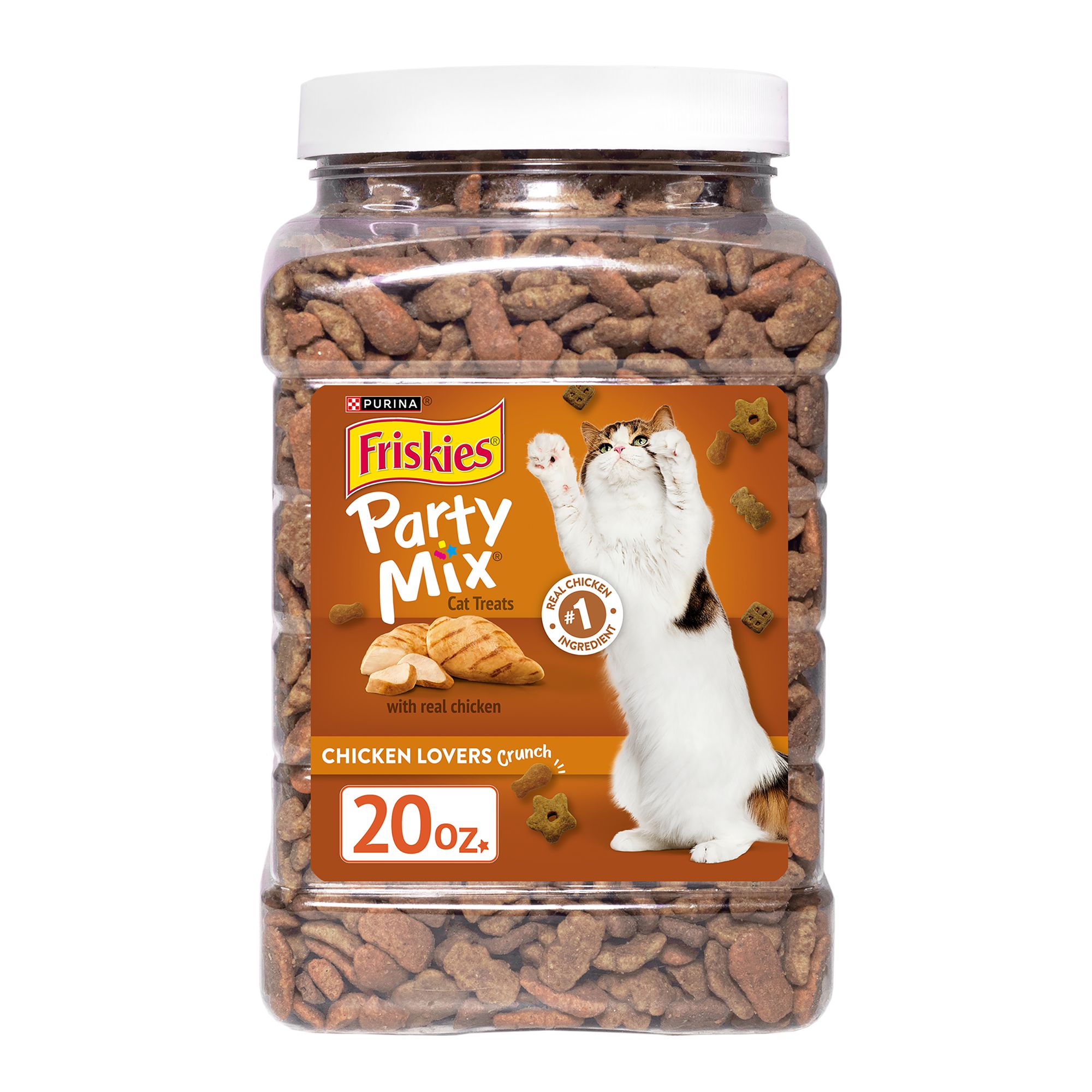 Key Benefits: Kitty treats for cats containing real chicken as the number 1 ingredient with turkey and cheddar flavors for added yum and deliver 100 percent complete and balanced nutrition for adult cats, These Friskies cat treats offer a satisfying crunchy texture that helps clean your cat's teeth and interesting shapes grab her attention, Party Mix cat treats with under 2 calories per treat delivered in a resealable package to preserve freshness, Purina Friskies Party Mix Picnic Crunch adult treats for cats are crafted in Purina-owned U.S. facilities, where they undergo regular checks for quality and safety, Friskies treats backed by Purina's more than 90 years of innovation, Spoil your pet with Purina products. Reward yourself with points on every purchase. Download the myPurina app today