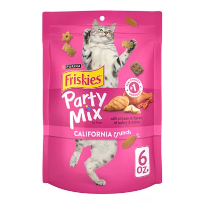 percent complete and balanced nutrition. Resealable package helps keep these Friskies treats fresh. Purina Friskies Party Mix California Crunch adult kitty treats for cats are crafted in U.S. facilities for quality and backed by Purina's more than 90 years of innovation. Spoil your pet with Purina products. Reward yourself with points on every purchase.
