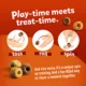 See what happens when play-time meets treat-time (and vice versa) by introducing your cat to Purina Friskies Playfuls With Chicken and Liver Flavor treats for cats. These Friskies treats for cats feature a fun, unique shape that is easy to toss, roll and spin, letting your cat play and pounce before devouring. Crafted with an appetizing crunchy texture, these Friskies treats for cats will stimulate your feline friend's tastebuds with a dual protein taste that includes real chicken as the first ingredient and a liver flavor they can't resist. Put a unique spin on treating with each of these fun, interactive and irresistible kitty treats for cats for a fun-filled way for you and your cat to share a moment together. Get the attention of even the pickiest eaters and bond with them like never before by introducing them to the delicious and fun phenomenon known as Purina Friskies Playfuls today.