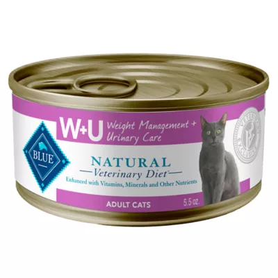 • Contains: Twenty-four (24) 5.5-oz. cans of BLUE Natural Veterinary Diet W + U Weight Management and Urinary Care Wet Cat Food, Chicken Recipe