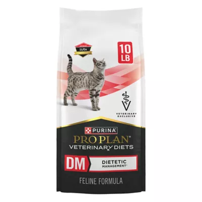 Your faithful feline companion needs the proper nutrition to make sure they stay happy and healthy, which is why certain cats may need Purina Pro Plan Veterinary Diets DM Dietetic Management high protein cat food. This specialized cat food is high in protein and low in carbohydrates to help support healthy glucose levels in cats and help maintain lean body mass and an ideal body condition. This delicious cat kibble formula is also formulated to promote a urinary environment that's unfavorable to the development of both struvite and calcium oxalate crystals. Give your cat the support she deserves with Purina Pro Plan Veterinary Diets DM Dietetic Management high protein cat food. The science behind our Purina Pro Plan Veterinary Diets cat food represents a collaboration among Purina nutritionists, researchers and veterinarians.