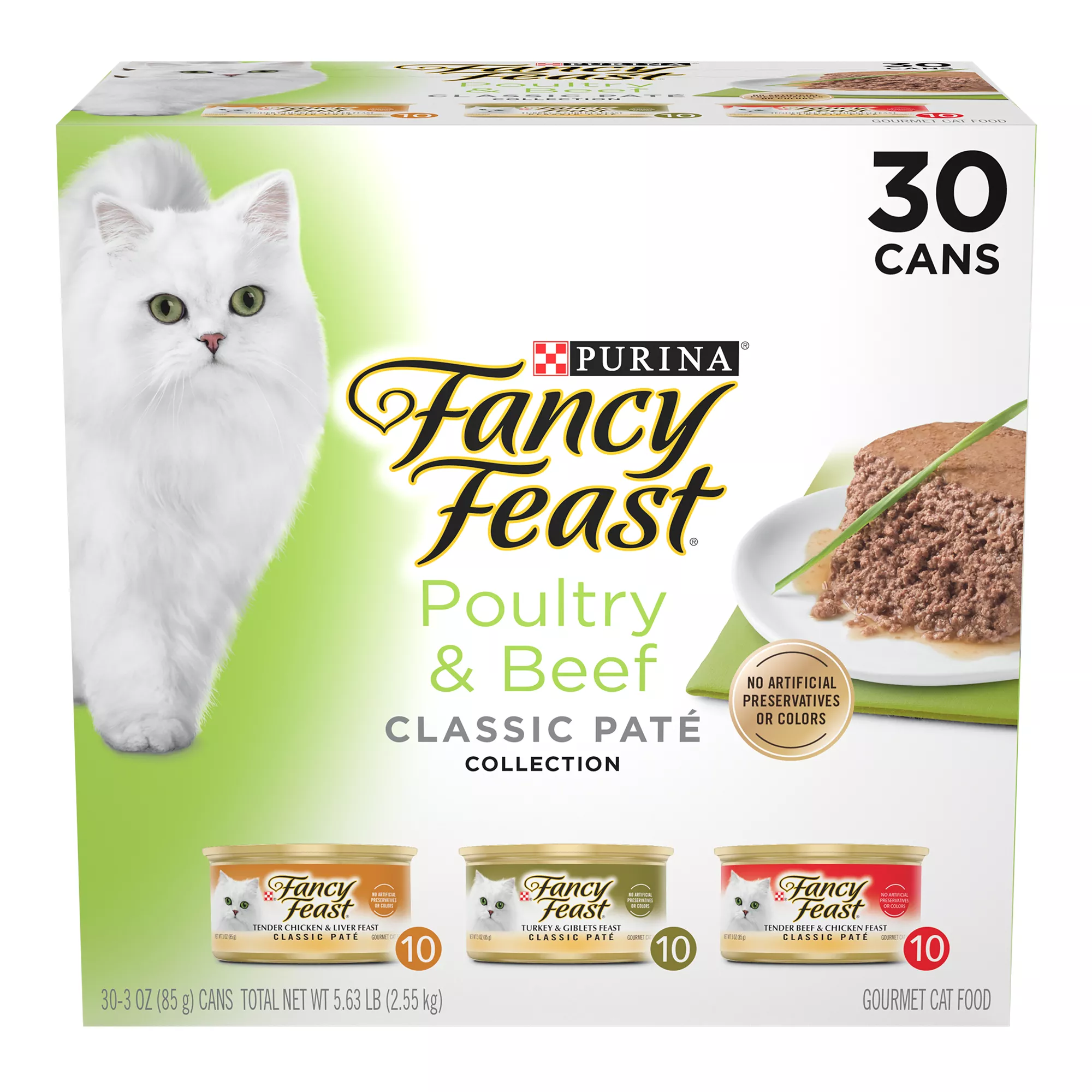 Purina® Fancy Feast® Classic Pate Wet Cat Food - Poultry & Beef, Variety Pack, 3 Oz, 30 Count