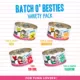 Flavor: Batch O' Bestiest Variety Pack includes: Tuna & Salmon Soulmates, Tuna & Pumpkin Valentine, Tuna & Chicken 4Eva, Tuna Too Cool