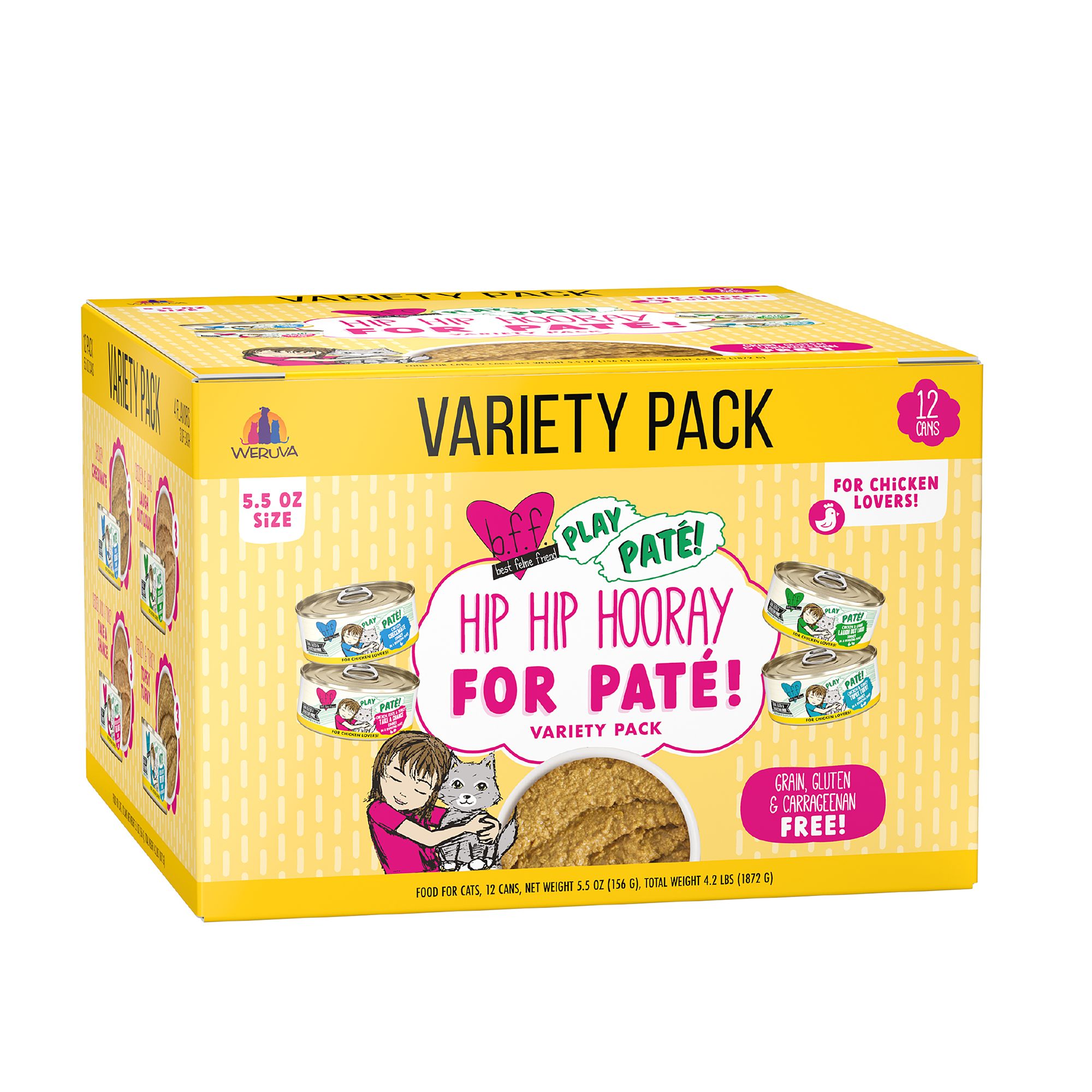 Flavor: Hip Hip Hooray for Pate! Variety Pack includes: Chicken Checkmate, Chicken, Duck & Turkey Take a Chance, Chicken & Lamb Laugh Out Loud, Chicken & Turkey Topsy Turvy