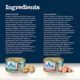 Ingredients: Chicken: Chicken, Chicken Broth, Fish, Chicken Liver, Dried Egg Product, Fish Oil (source of DHA–Docosahexaenoic Acid), Flaxseed, Potatoes, Natural Flavor, Guar Gum, Sodium Acid Pyrophosphate, Potassium Chloride, Taurine, Choline Chloride, Carrageenan, Cassia Gum, Magnesium Sulfate, Thiamine Mononitrate (Vitamin B1), Iron Amino Acid Chelate, Zinc Amino Acid Chelate, Vitamin E Supplement, Niacin Supplement (Vitamin B3), Copper Amino Acid Chelate, Manganese Amino Acid Chelate, Sodium Selenite, Vitamin A Supplement, Calcium Pantothenate (Vitamin B5), Vitamin B12 Supplement, Riboflavin Supplement (Vitamin B2) Pyridoxine Hydrochloride (Vitamin B6), Biotin (Vitamin B7), Folic Acid (Vitamin B9), Potassium Iodide, Vitamin D3 Supplement, preserved with Mixed Tocopherols.Salmon: Salmon, Chicken, Fish Broth, Chicken Liver, Peas, Natural Flavor, Potatoes, Sodium Acid Pyrophosphate, Fish Oil (source of DHA–Docosahexaenoic Acid), Guar Gum, Flaxseed, Potassium Chloride, Calcium Carbonate, Taurine, Salt, Choline Chloride, Carrageenan, Cassia Gum, Magnesium Sulfate, Iron Amino Acid Chelate, Zinc Amino Acid Chelate, Thiamine Mononitrate (Vitamin B1), Vitamin E Supplement, Niacin Supplement (Vitamin B3), Copper Amino Acid Chelate, Manganese Amino Acid Chelate, Sodium Selenite, Vitamin A Supplement, Calcium Pantothenate (Vitamin B5), Vitamin B12 Supplement, Riboflavin Supplement (Vitamin B2), Pyridoxine Hydrochloride (Vitamin B6), Biotin (Vitamin B7), Folic Acid (Vitamin B9), Potassium Iodide, Vitamin D3 Supplement, preserved with Mixed Tocopherols.