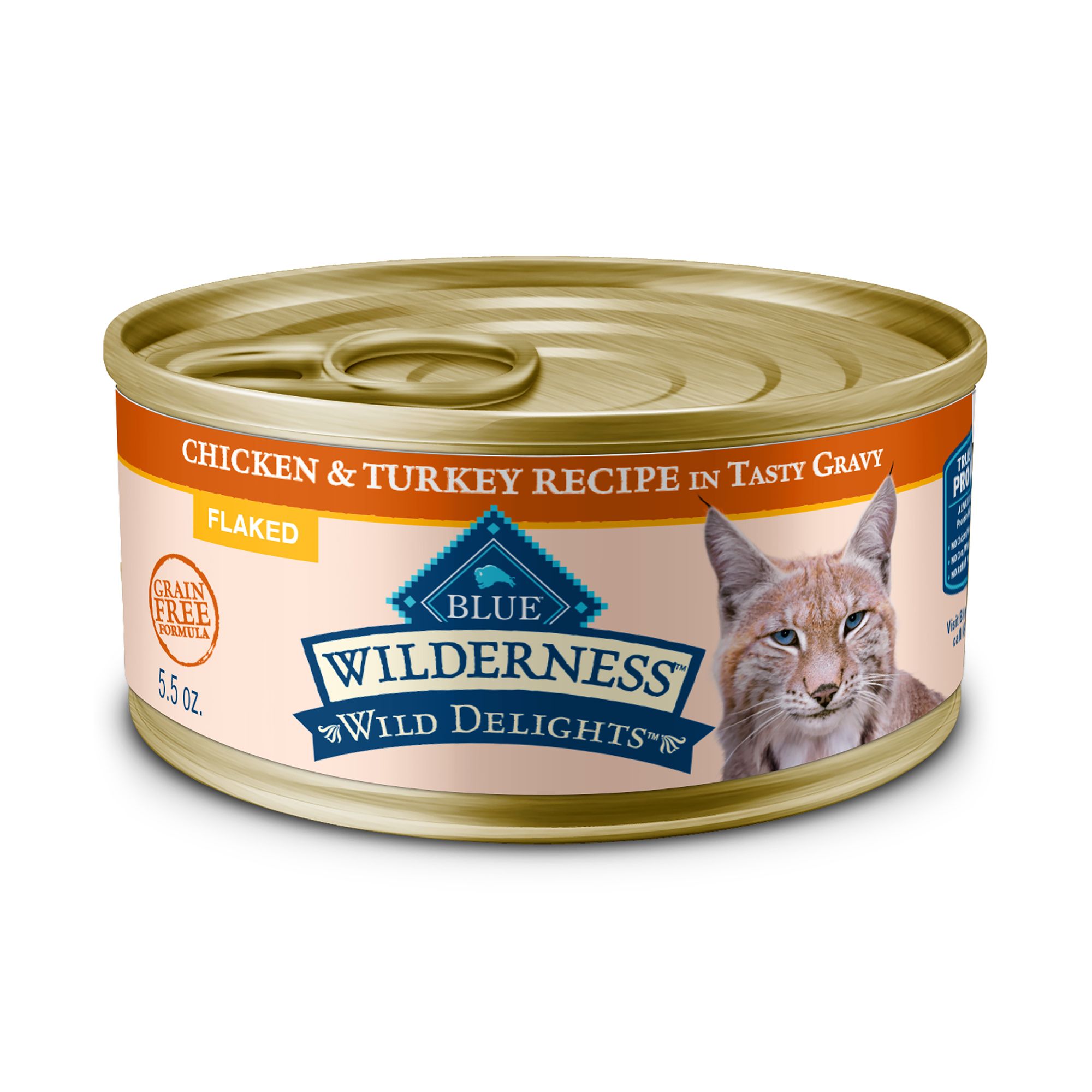 DESCRIPTION BLUE Freedom Grain-Free Mature Indoor Wet Cat Food Pate is a delicious way to give your feline friend the high-quality nutrition they deserve without grains that contain gluten. It's made with real chicken as the first ingredient to provide the energy mature cats need to stay active. What's more, this natural cat food is enhanced with vitamins, minerals, and other essential nutrients. Like all Blue Buffalo cat food, this indoor cat food recipe contains no chicken (or poultry) by-product meals. It&339;s also free of corn, wheat, and soy.