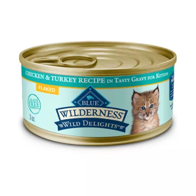 Start your kitten's growth off right with BLUE Wilderness Wild Delights Flaked Natural Wet Food for Kittens, Chicken & Trout in Tasty Gravy. Made with a protein-rich blend of chicken and trout, this grain-free cat food will help provide the energy and nutrients your kitten needs in this crucial stage. Your feline friend will love the flavors and texture of this cat food recipe. And like all Blue Buffalo natural cat food recipes, BLUE Wilderness cat food does not contain any chicken (or poultry) by-product meals. It is also free of corn, wheat, soy, artificial flavors, and preservatives. You can feel great knowing Blue Buffalo is helping your kitten thrive with a protein-packed diet.