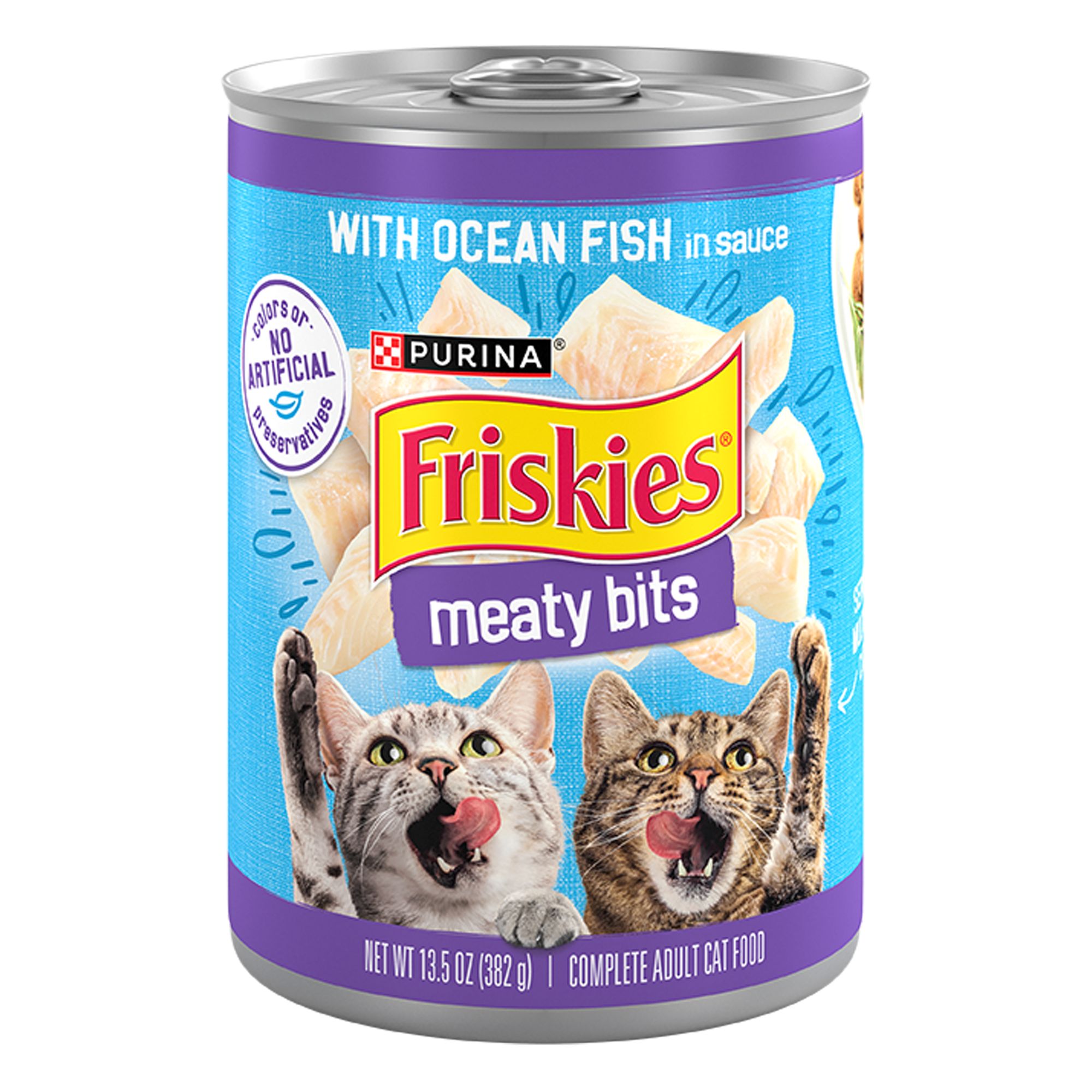 multiple meals for single cat families.Real Protein: Friskies canned cat