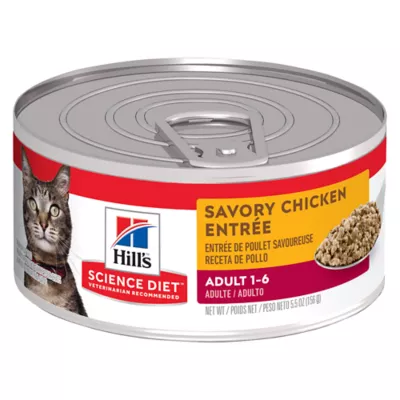 Made with purposeful ingredients for a flavorful, nutritious meal, Hill's Science Diet Adult Savory Chicken Entree wet food uses high-quality ingredients to ensure availability of key nutrients and proteins for your adult cat. Formulated for the developmental needs of grown felines, this cat food made with natural ingredients provides high-quality protein for muscle maintenance. Give your cat the perfect balance of taste and nutrition with this smooth canned food packed with antioxidants plus vitamins C+E. There's more to love with the new look of Science Diet.