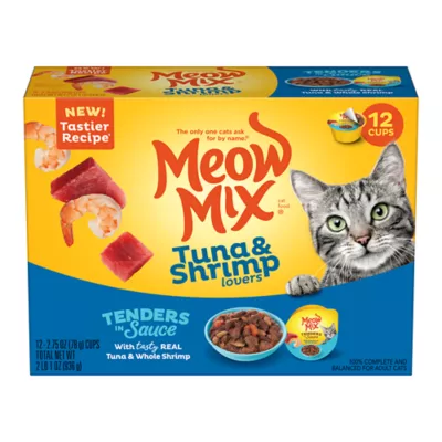 Meow Mix Tender Favorites With Real Tuna & Whole Shrimp in Sauce is a uniquely delicious mix combining real seafood in a savory sauce - fortified with vitamins and minerals to help maintain your cat's health. This wholesome recipe makes every mealtime as nutritious as it is delicious.