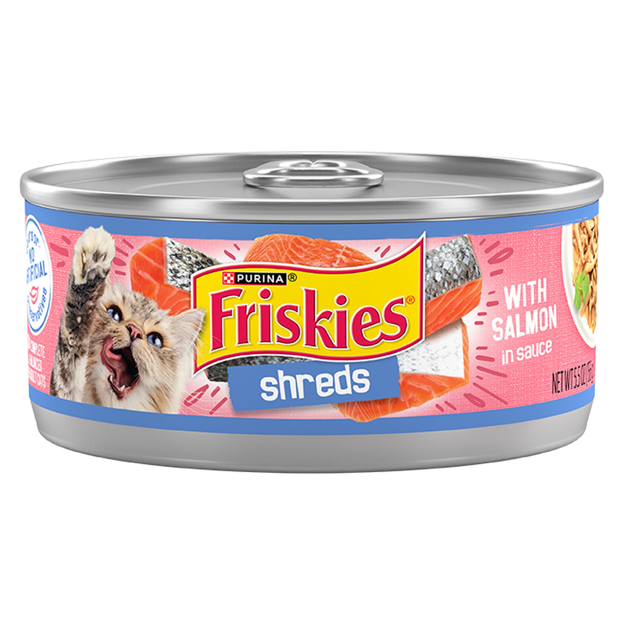 Sate your cat's desires for savory seafood with Purina Friskies Pate Salmon Dinner wet cat food for adult cats. The salmon flavor delivers the taste cats love, while the smooth pate cat food texture gives her a tender, palate-pleasing reason to savor every mouthwatering morsel in her dish. Open a pull-tab can and let the enticing Friskies wet cat food aroma lure her to you at mealtime. Every serving offers 100 percent complete and balanced Purina cat food nutrition for the growth of kittens and maintenance of adult cats, so this wet cat food pate can support the growth and maintenance of your darling cat throughout her happy life with you. With so much yummy goodness packed into every bite, this Purina Friskies cat food Pate recipe is sure to be a favorite in your cat's diet. Fill her dish at mealtime with this canned cat food pate every day and show her that you pay close attention to what most excites her taste buds.