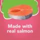 Sate your cat's desires for savory seafood with Purina Friskies Pate Salmon Dinner wet cat food for adult cats. The salmon flavor delivers the taste cats love, while the smooth pate cat food texture gives her a tender, palate-pleasing reason to savor every mouthwatering morsel in her dish. Open a pull-tab can and let the enticing Friskies wet cat food aroma lure her to you at mealtime. Every serving offers 100 percent complete and balanced Purina cat food nutrition for the growth of kittens and maintenance of adult cats, so this wet cat food pate can support the growth and maintenance of your darling cat throughout her happy life with you. With so much yummy goodness packed into every bite, this Purina Friskies cat food Pate recipe is sure to be a favorite in your cat's diet. Fill her dish at mealtime with this canned cat food pate every day and show her that you pay close attention to what most excites her taste buds.