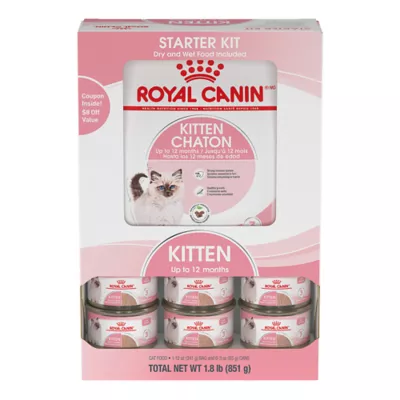 DESCRIPTION Royal Canin Kitten Thin Slices in Gravy and Dry Kitten Food make it simple to feed a deliciously satisfying and nutritionally tailored combination of wet and dry foods, right from the start. Royal Canin Cat Food promotes healthy development and supports your kitten's growing bones and muscles. An exclusive combination of adapted protein, vitamin, and mineral levels helps support their rising energy needs for this final stage of kittenhood between 4 months and 1 year old. Clinically proven antioxidants, including vitamins E and C, help support the healthy development of immune systems. Tailor-made with a tasty chunk size and texture, the wet food is adapted for a growing kitten's baby teeth, while the dry kitten food contains prebiotics that help promote a healthy balance of intestinal microbiota for digestive health. Keep kittens on this wet and dry cat food combination until 12 months regardless of size. Then switch to Royal Canin Feline Care Nutrition Adult Cat Food for continued healthy development.