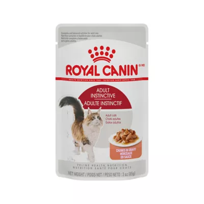 Indoor cats tend to spend their days napping, grooming, and grazing, but all that leisure time can result in extra pounds or digestive issues. Royal Canin Adult Cat Instinctive Chunks in Gravy soft cat food is formulated with the balanced nutrition your pet needs for optimal cat health. This formula comes in a convenient pouch and features the ideal ratio of energy derived from proteins, fats, and carbohydrates, in a chunky, meaty texture your cat will love. The result? A satisfied cat with the support they need to maintain an ideal weight. Mix with a Royal Canin Indoor Adult dry cat food for a meal that's sure to please.
