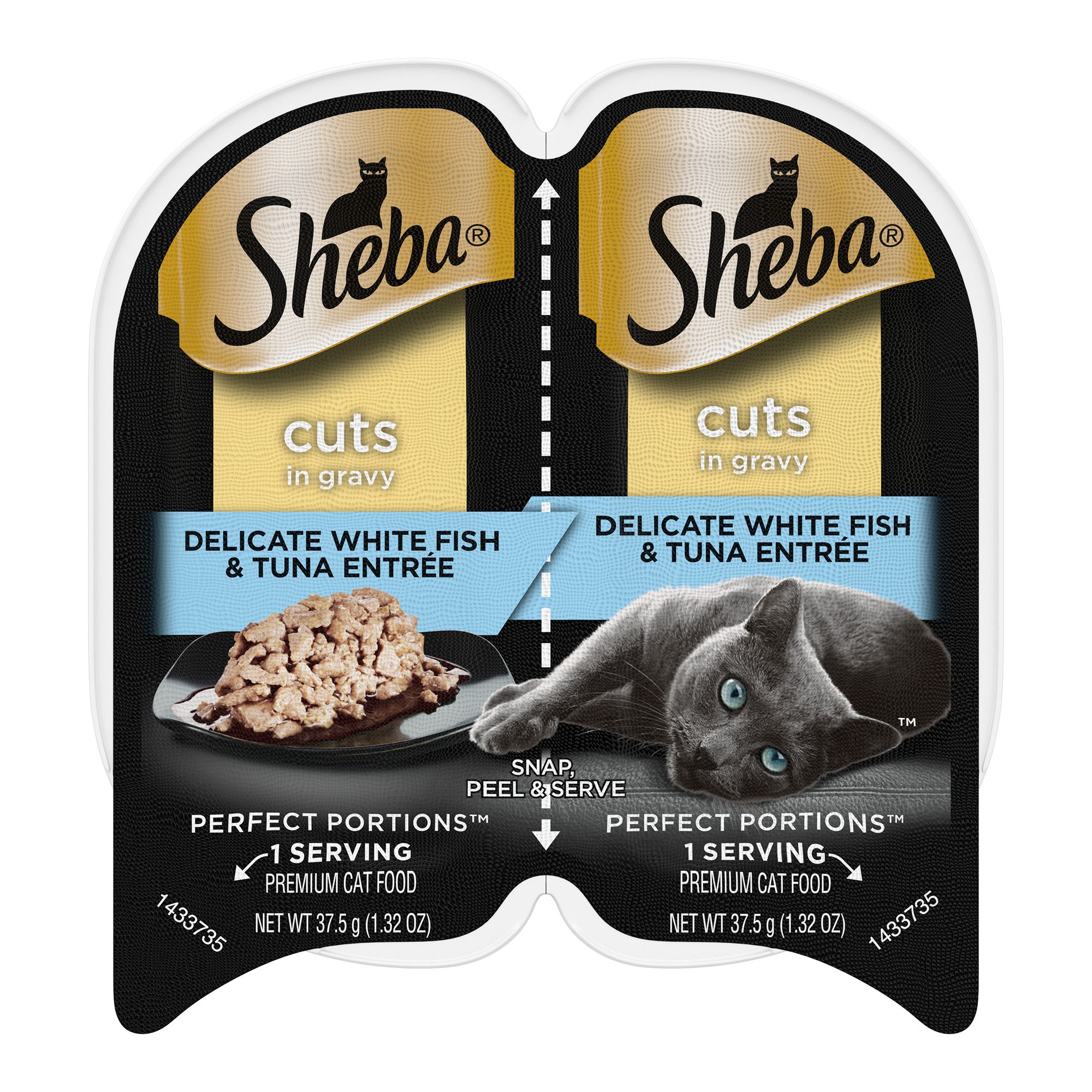- Twin-Pack Tray: Contains one (1) 2.6 oz. Twin-Pack Tray of Sheba Gravy Indulgence Adult Wet Cat Food White Fish Entree in Extra Gravy.