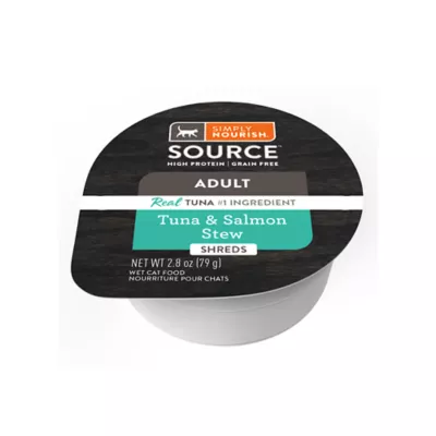 Make mealtime special for your cat by serving Simply Nourish® SOURCE™ Tuna & Salmon Stew Adult Cat Food. This delicious wet blend comes in shreds and features the great flavor combination of tuna and salmon in each and every bite. It all adds up to a mealtime choice your cat will love. Only at PetSmart.