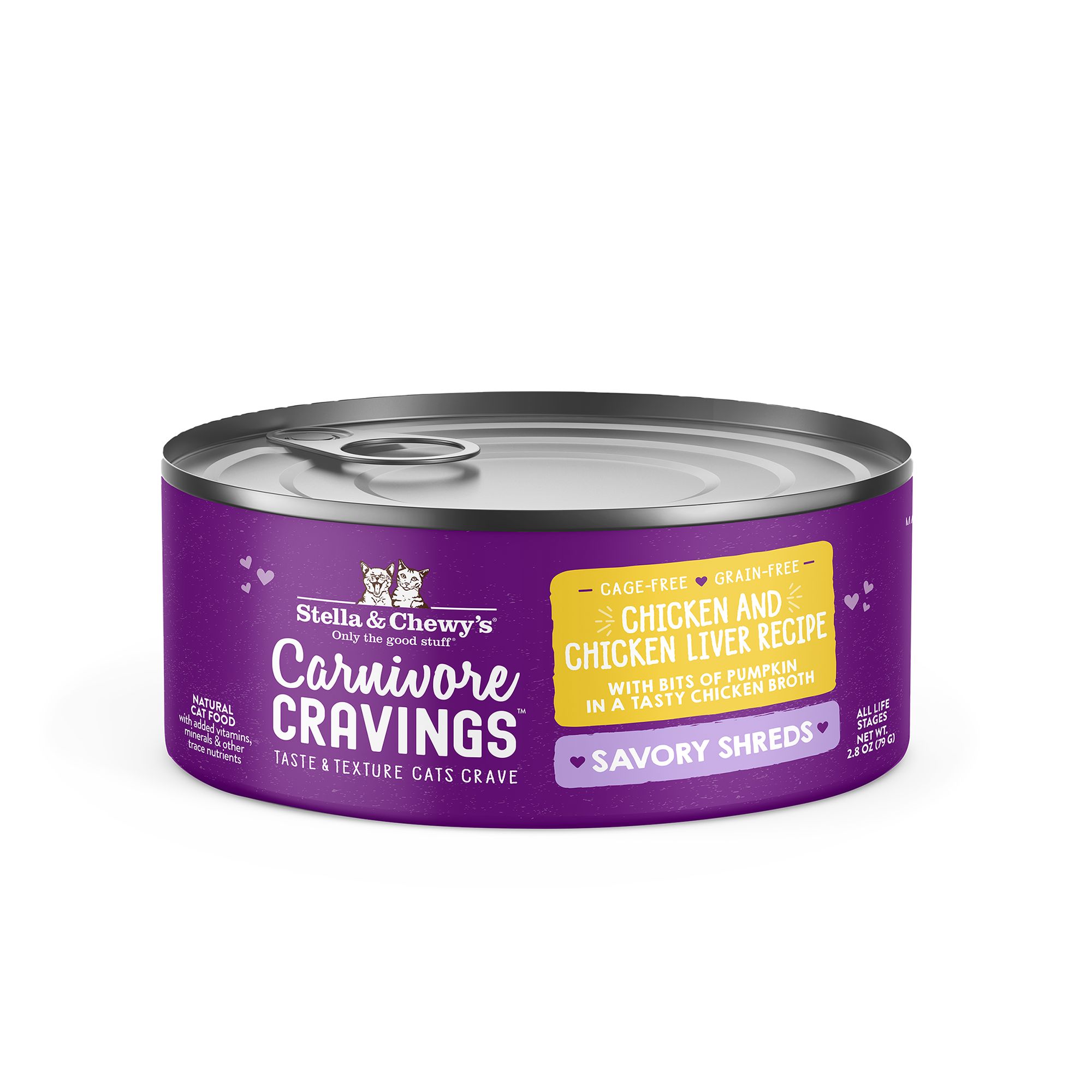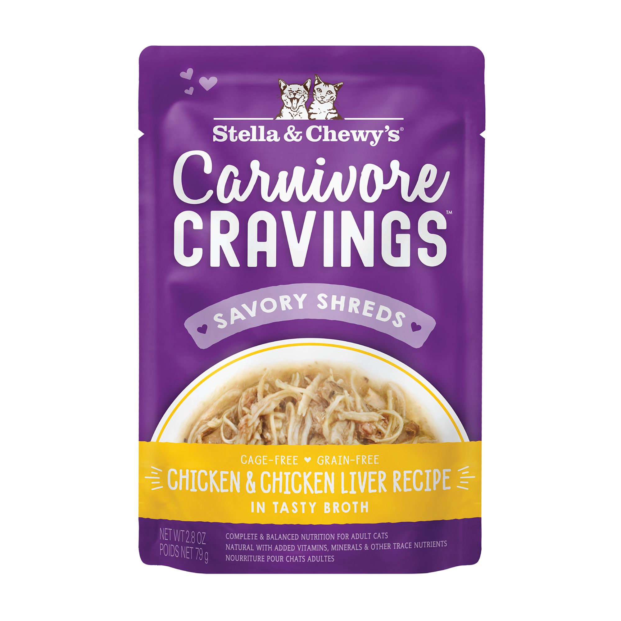 Description: Cats are carnivores who need real meat to thrive. So feed them more of what they crave! Made with premium cage-free chicken and chicken liver, these high-protein recipes support your cat's muscle development, daily energy, and overall health. Plus, your cat will love the taste and texture of this tender, meaty paté. Rich and hydrating broth rounds out these recipes, supporting urinary tract health and overall hydration-great if your kitty doesn't drink enough water on their own. You won't find any fillers, byproducts, or artificial ingredients here. We only use high-quality ingredients that not only taste great, but also support your cat's overall health. Your feline can enjoy Carnivore Cravings as a complete meal or as a topper to enhance their regular diet.