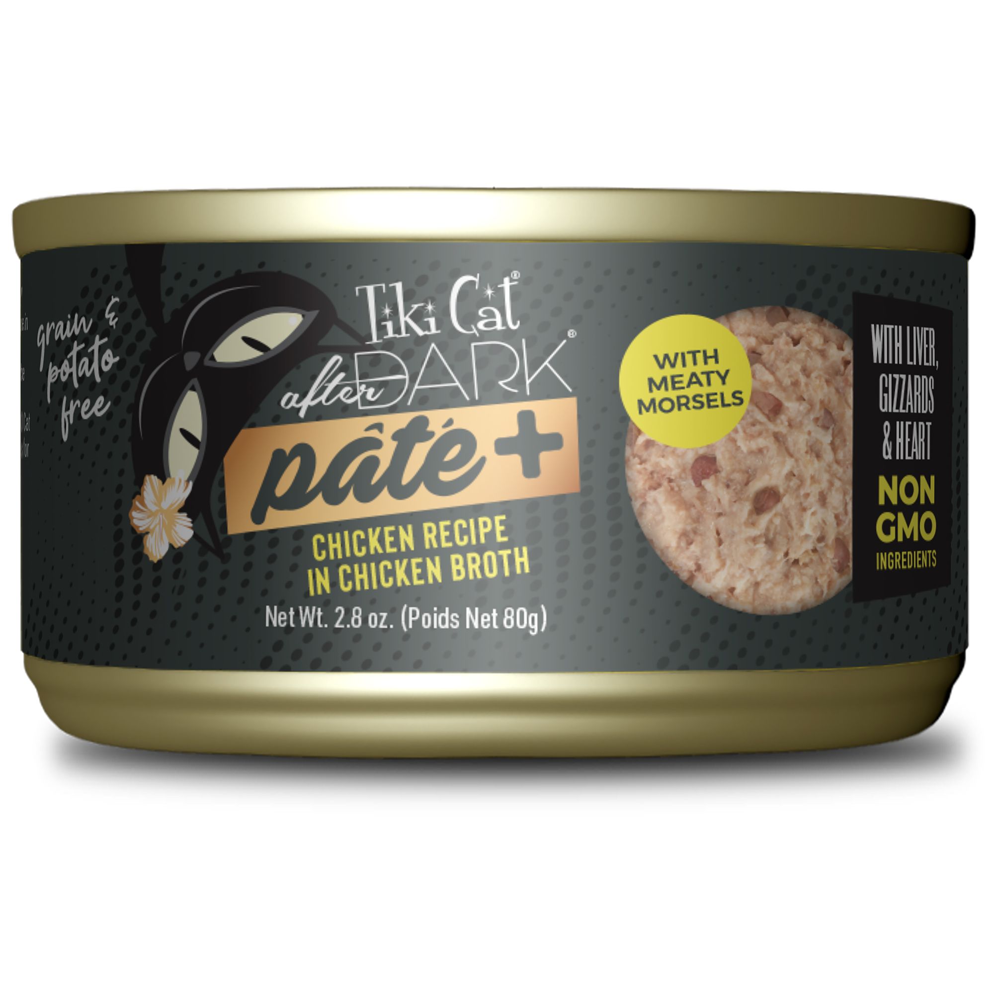 Cats know the best hunting happens after dark. Awaken your cat's instinctual desires for protein with Tiki Cat After Dark Pate wet cat food. This complete and balanced meal closely mimics cats' natural prey diets as obligate carnivores, featuring real, finely minced rabbit and chicken liver in a savory, easy-to-eat pate. Each can of Tiki Cat After Dark Pate wet cat food gives cats the high-protein, grain free nutrition they need with no carrageenan, no vegetables and no artificial preservatives. Open a can of this nutritionally correct, deliciously indulgent pate and watch your cat go wild!