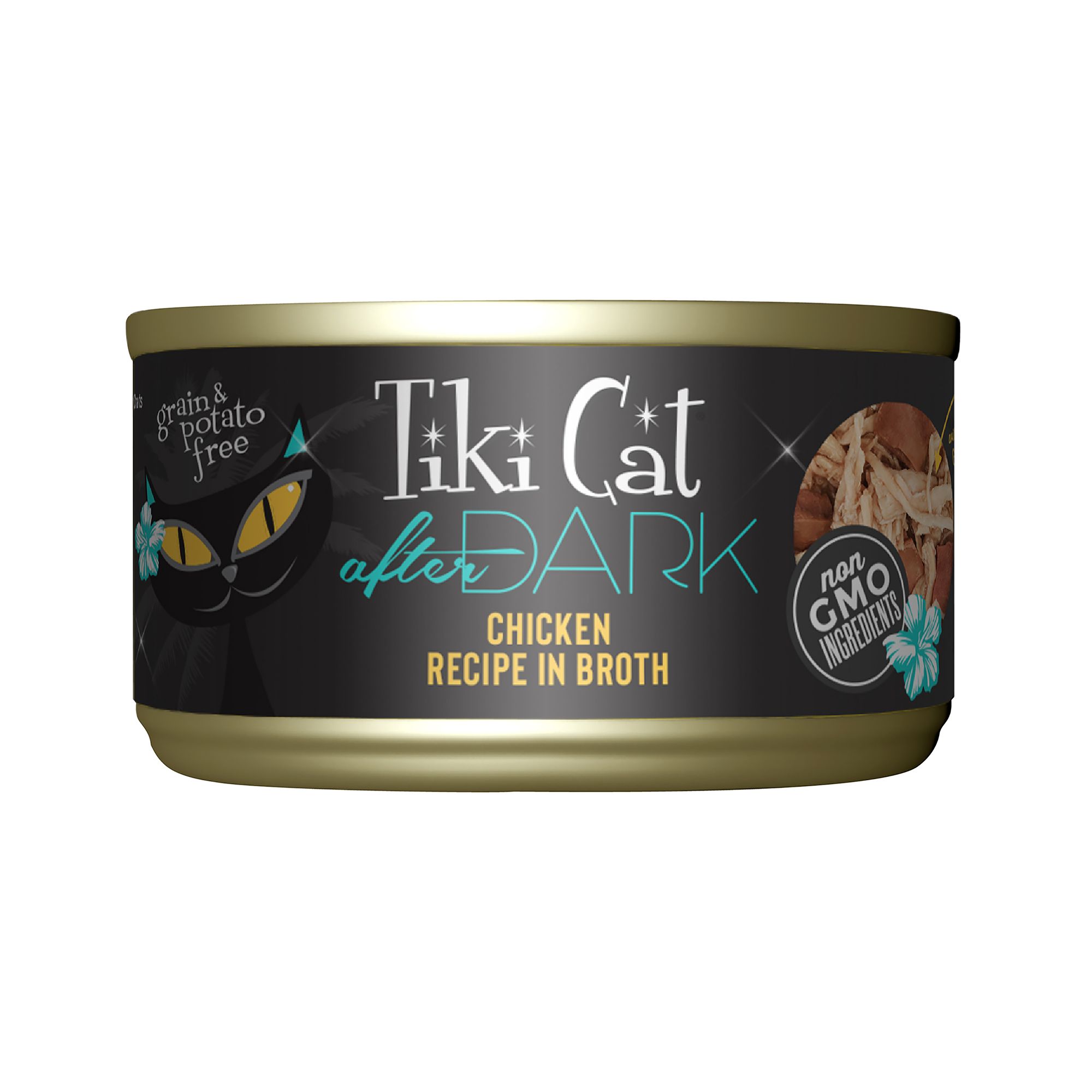 Description: Tiki Cat® After Dark™ Wet Cat Food is mouthwatering, hearty meals of shredded chicken and nutrient–rich organ meat.
