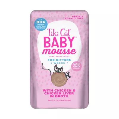 Tiki Cat Velvet Kitten Mousse is made just for kittens, featuring nutrient-dense, high-quality protein from chicken, chicken liver and eggs. Help your kitten to grow up healthy and strong vy serving this delicious mealtime choice.
