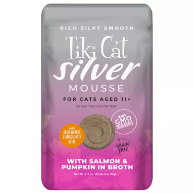 Tiki Cat Velvet Senior Wet Cat Food is a full-flavor, silky-smooth mousse made just for older cats. Made with high-quality protein to maintain muscle mass, antioxidant nutrients to support healthy immune systems and a gentle fiber source to improve digestion.