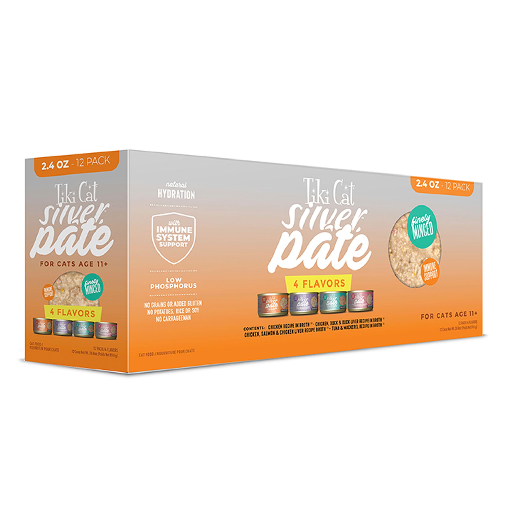 Ingredients: Flaked Tuna Recipe in Broth Tuna, Fish Broth, Water Sufficient for Processing, Sunflower Oil, Salmon Oil, Pumpkin, Taurine, Calcium Chloride, Monosodium Phosphate, Dried Chicory Root, Salt, Magnesium Sulfate, Choline Chloride, Potassium Chloride, Zinc Proteinate, Vitamin E Supplement, Thiamine Mononitrate, Vitamin K (Menadione Sodium Bisulfite Complex), Niacin, Manganese Proteinate, Iron Proteinate, Copper Proteinate, Vitamin A Supplement, Pyridoxine Hydrochloride, Sodium Selenite, d–Calcium Pantothenate, Riboflavin Supplement, Folic Acid, Potassium Iodide, Biotin, Vitamin B12 Supplement, Vitamin D3 Supplement. Flaked Tuna & Cod Recipe in BrothTuna, Fish Broth, Water Sufficient for Processing, Cod, Sunflower Oil, Salmon Oil, White Sweet Potato, Taurine, Calcium Chloride, Monosodium Phosphate, Dried Chicory Root, Salt, Magnesium Sulfate, Choline Chloride, Potassium Chloride, Zinc Proteinate, Vitamin E Supplement, Thiamine Mononitrate, Vitamin K (Menadione Sodium Bisulfite Complex), Niacin, Manganese Proteinate, Iron Proteinate, Copper Proteinate, Vitamin A Supplement, Pyridoxine Hydrochloride, Sodium Selenite, d–Calcium Pantothenate, Riboflavin Supplement, Folic Acid, Potassium Iodide, Biotin, Vitamin B12 Supplement, Vitamin D3 Supplement. Shredded Chicken Recipe in SauceChicken, Chicken Broth, Water Sufficient for Processing, Sunflower Oil, Salmon Oil, Pumpkin, Taurine, Calcium Chloride, Monosodium Phosphate, Dried Chicory Root, Salt, Magnesium Sulfate, Choline Chloride, Potassium Chloride, Zinc Proteinate, Vitamin E Supplement, Iron Proteinate, Thiamine Mononitrate, Niacin, Manganese Proteinate, Copper Proteinate, Vitamin A Supplement, Pyridoxine Hydrochloride, Sodium Selenite, d–Calcium Pantothenate, Riboflavin Supplement, Folic Acid, Potassium Iodide, Biotin, Vitamin B12 Supplement, Vitamin D3 Supplement. Shredded Chicken & Duck Recipe in SauceChicken, Chicken Broth, Water Sufficient for Processing, Duck, Sunflower Oil, Salmon Oil, White Sweet Potato, Taurine, Calcium Chloride, Monosodium Phosphate, Dried Chicory Root, Salt, Magnesium Sulfate, Choline Chloride, Potassium Chloride, Zinc Proteinate, Vitamin E Supplement, Iron Proteinate, Thiamine Mononitrate, Niacin, Manganese Proteinate, Copper Proteinate, Vitamin A Supplement, Pyridoxine Hydrochloride, Sodium Selenite, d–Calcium Pantothenate,