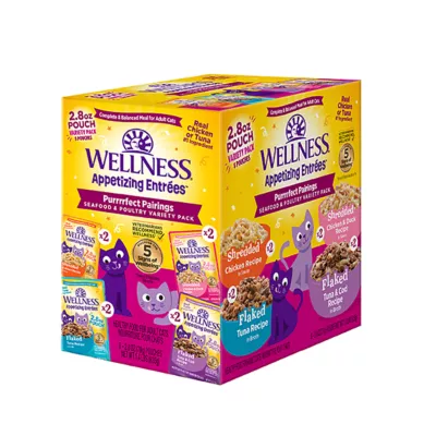 COMPLETE & BALANCED MEAL: Wellness® Appetizing Entrées™ offers complete and balanced nutrition for adult cats and is crafted with real, high–quality, natural* ingredients to support your cat's daily nutrition. *with added vitamins, minerals & taurine