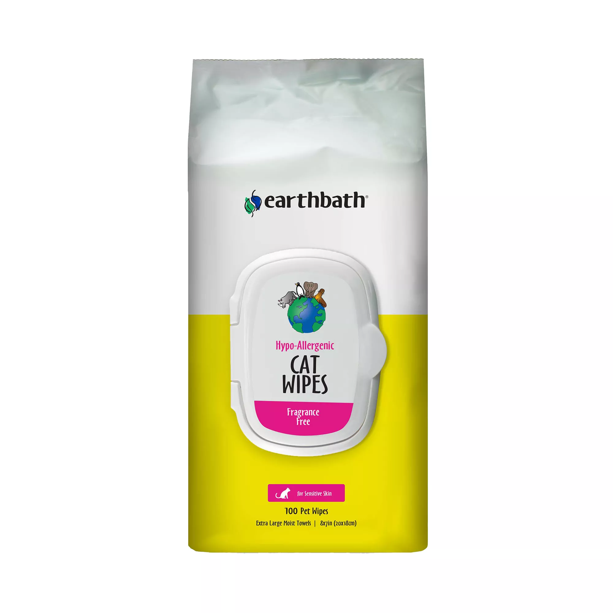 Earthbath Hypo-Allergenic Cat Wipes - Fragrance Free - Sensitive Skin - XL Towels - 100ct