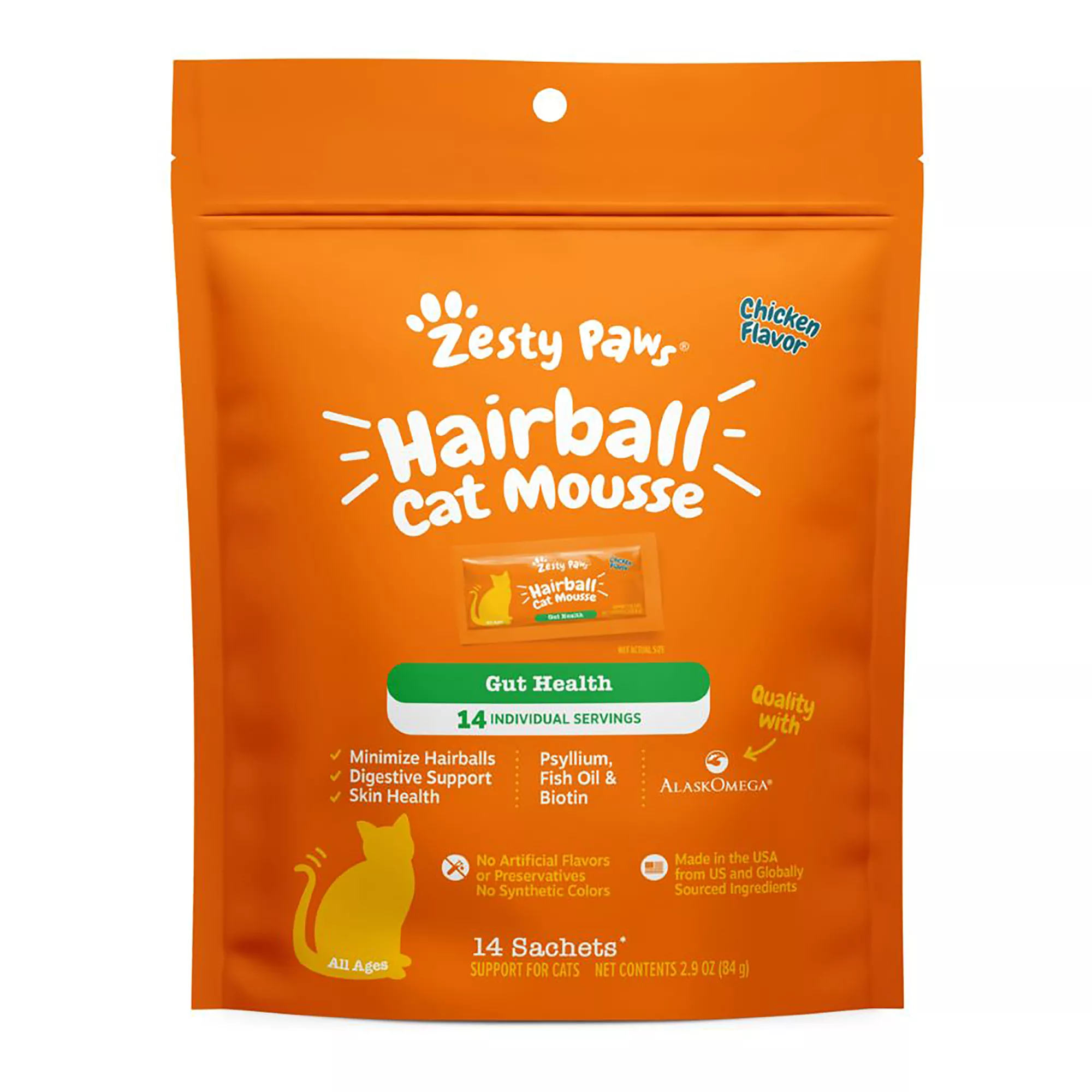 Zesty Paws Hairball Cat Mousse for Gut Health with AlaskOmega, Psyllium, Fish Oil & Biotin