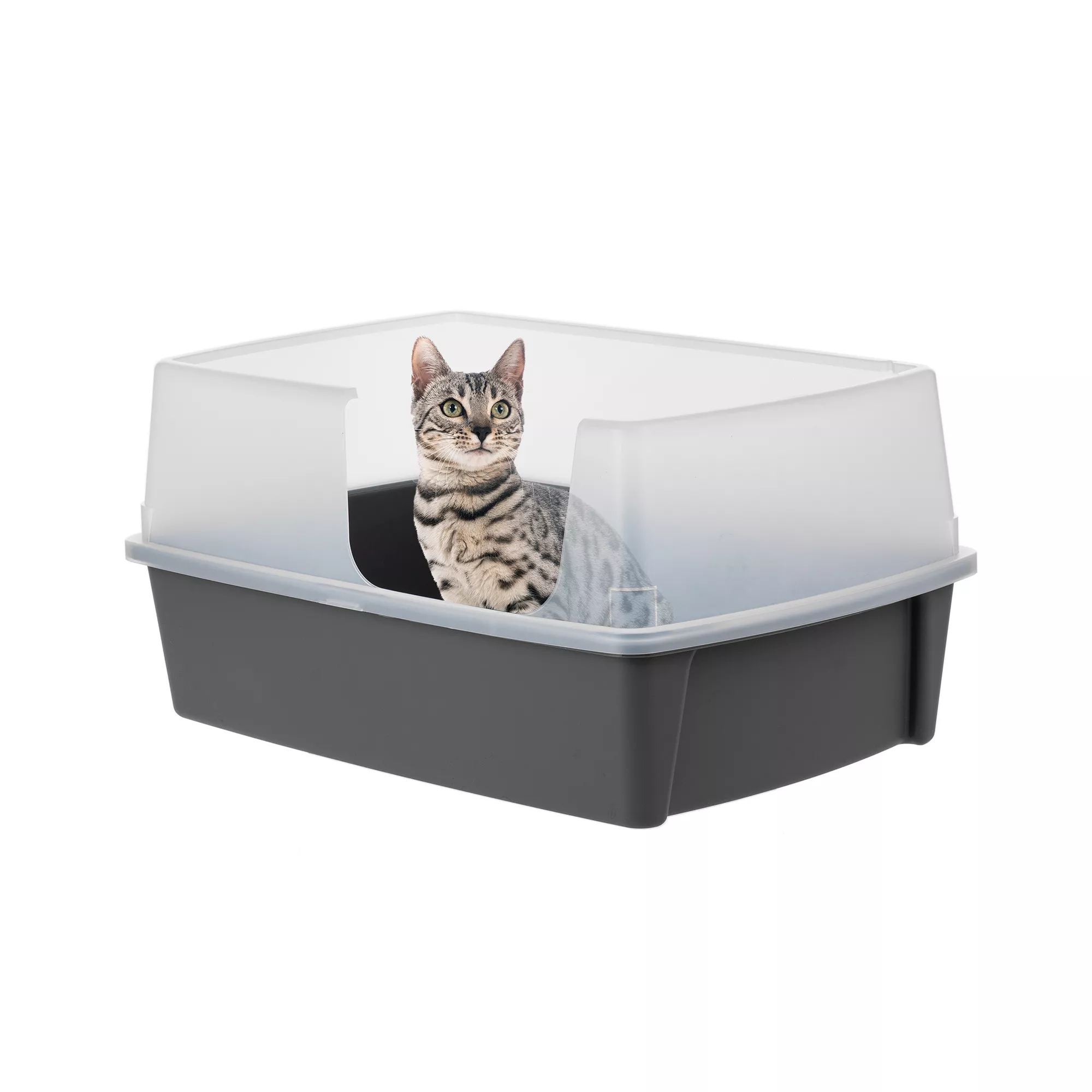 IRIS, Open Top Cat Litter Tray with Scoop and Scatter Shield, Cat Litter Pan, Gray