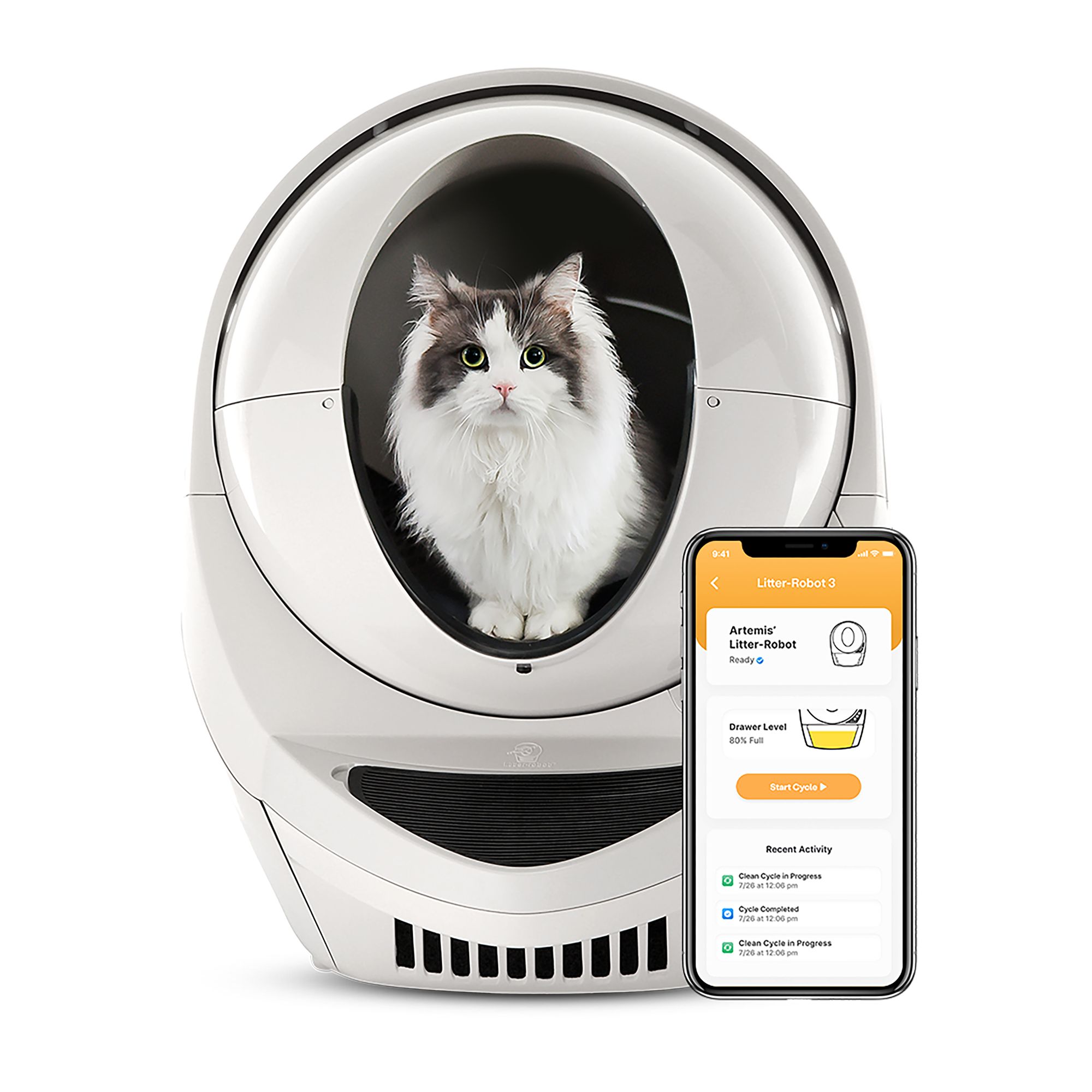 Description and Overview: Stop scooping, neutralize litter box odors, and give your cats a clean bed of litter every time with Litter-Robot EVO, the streamlined automatic litter box that fits in small apartments and homes. Litter-Robot EVO features enhanced odor control with a carbon-filtered waste drawer, reduced litter tracking, and real-time monitoring of waste levels through the Whisker app. Elegantly designed to maximize comfort for up to 2 cats, Litter-Robot's advanced self-cleaning technology ensures that each cat gets a fresh bed of litter, promoting cleanliness in busy pet homes. Featuring a covered litter box design, Litter-Robot EVO boasts a large opening that accommodates cats of all sizes, including large cat breeds. Plus, Litter-Robot EVO is compatible with clay-clumping cat litter. No need for proprietary products! Join over 1.5 million pet parents who've changed their lives with cats and upgrade to a smarter litter box.