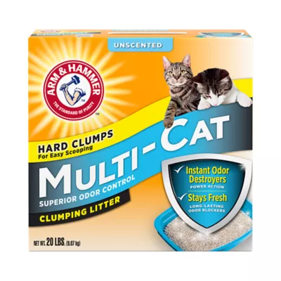 ARM & HAMMER Multi-Cat Unscented Clumping Litter combines instant odor destroyers and Baking Soda to eliminate tough odors. This formula is ideal for multiple cat households and is Unscented for fragrance sensitive cats and owners.