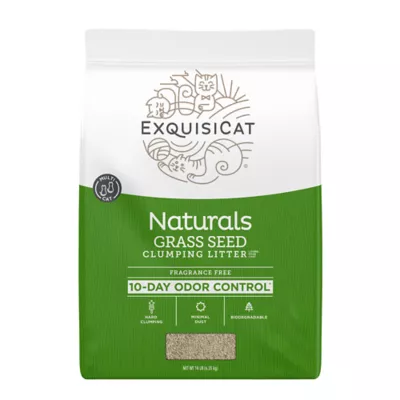 Exquisicat® Naturals Grass Seed Clumping Cat Litter offers strong moisture absorbency, 10-day odor control, and minimal dust and tracking so your home stays fresh and clean. With the ExquisiCat® brand, you can spend more time with your cat and less time worrying about their litter box. Only at PetSmart.