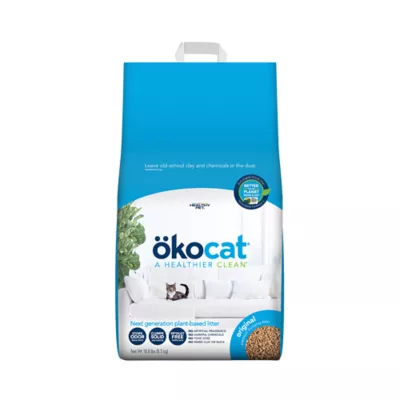 DESCRIPTION Make the switch to a cleaner and healthier cat litter. okocat original, premium clumping litter is relentless at controlling odor, while offering a pleasant, playful texture that's easy on paws and a fresh natural scent reminiscent of the great outdoors that you and your cat will love. Choose a cat litter that's cleaner and healthier for your cat, family and home that is made entirely from sustainably sourced, responsibly rescued natural wood fiber and leave old school clay and chemicals in the dust. okocat offers the brilliance of European engineering for a better performing litter. Now in 100% recyclable packaging that's better for the planet inside and out.